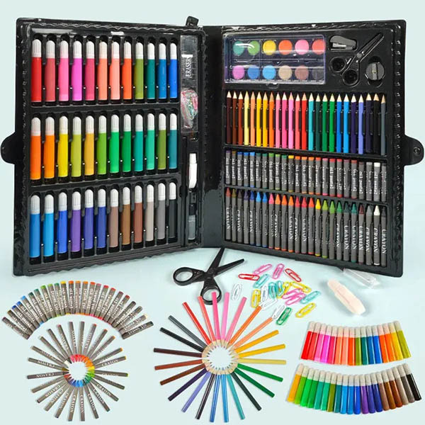 Isto é mais do que apenas um estojo de lápis. São 150 peças de pura criatividade. De esboços a pinturas, cola e tesoura — está tudo aqui.