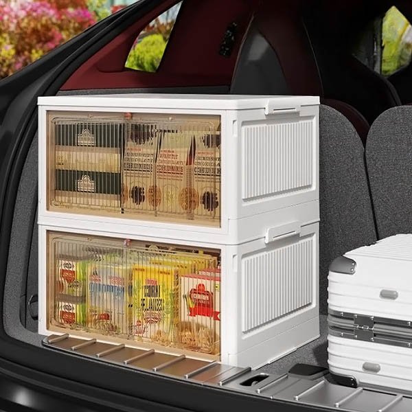 🚪 Tampa com abertura dupla abre pela frente ou por cima – alcance o que precisa sem desempilhar ou mover nada