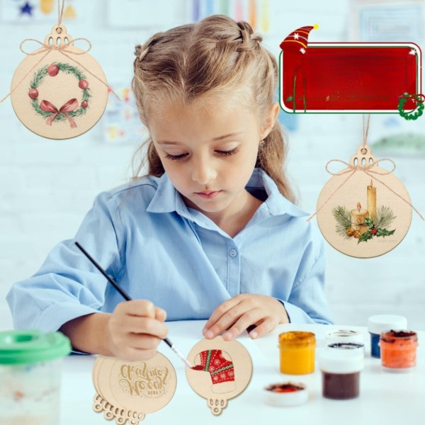 Transforme a sua decoração de Natal com 30 discos de madeira pré-perfurados de primeira qualidade, perfeitos para criar decorações personalizadas que conferem um encanto rústico à sua árvore de Natal.