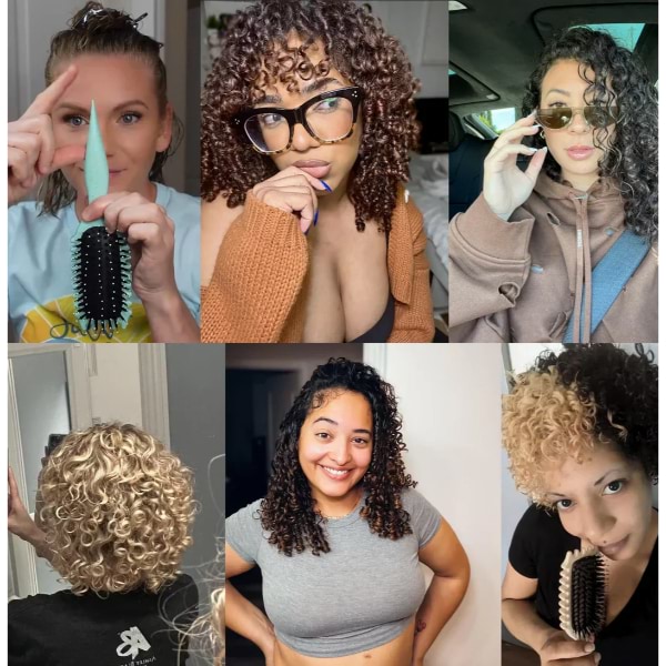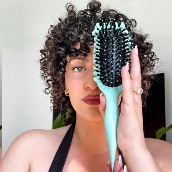 A nossa escova alisa cada madeixa para caracóis definidos e sem frizz durante todo o dia.