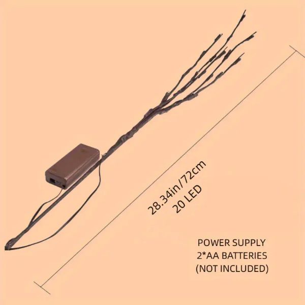 Estas luzes em forma de ramos de salgueiro funcionam com 2 pilhas AA (pilhas não incluídas) e geram calor mínimo mesmo após uso prolongado.