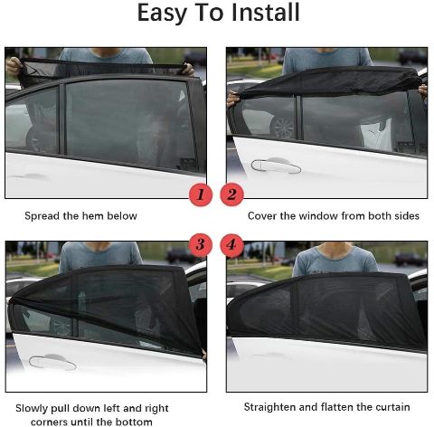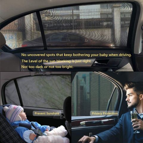 Combata o calor do verão com as cortinas Sunshade! Proteja o seu carro do calor e mantenha-o fresco e confortável. Estas cortinas de malha são ideais para proteger os passageiros, incluindo bebés, dos raios UV nocivos, enquanto garantem privacidade e reduzem o brilho do sol.