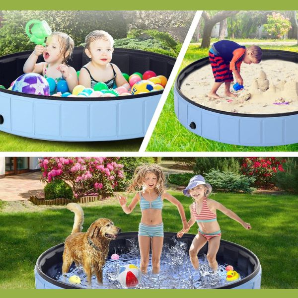 Não apenas para animais de estimação, esta PISCINA é uma ótima maneira das crianças também se divertirem na água. O seu fundo antiderrapante e a sua construção duradoura fazem dela uma área de jogo segura para as crianças. Encha-a com água, areia ou até mesmo bolas de plástico para infinitas opções de entretenimento. Perfeita para convivios de família e brincadeiras de verão.