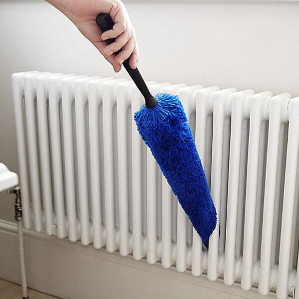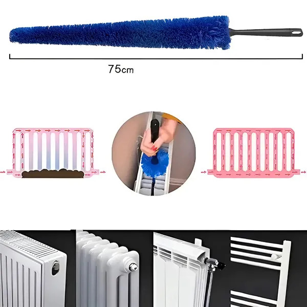 Não é necessário remover as grelhas do radiador. O DUSTOFF foi feito à medida para a limpeza de radiadores. A sua carga eletrostática atrai o pó e a sujidade, tornando-o ideal para radiadores do tipo painel, coluna, lóbulos, escada e toalheiros.