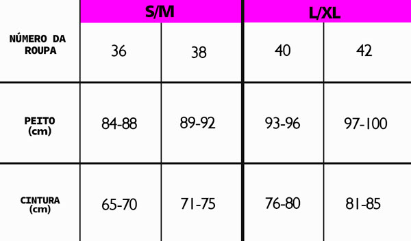 Tamanho: S/M, L/XL